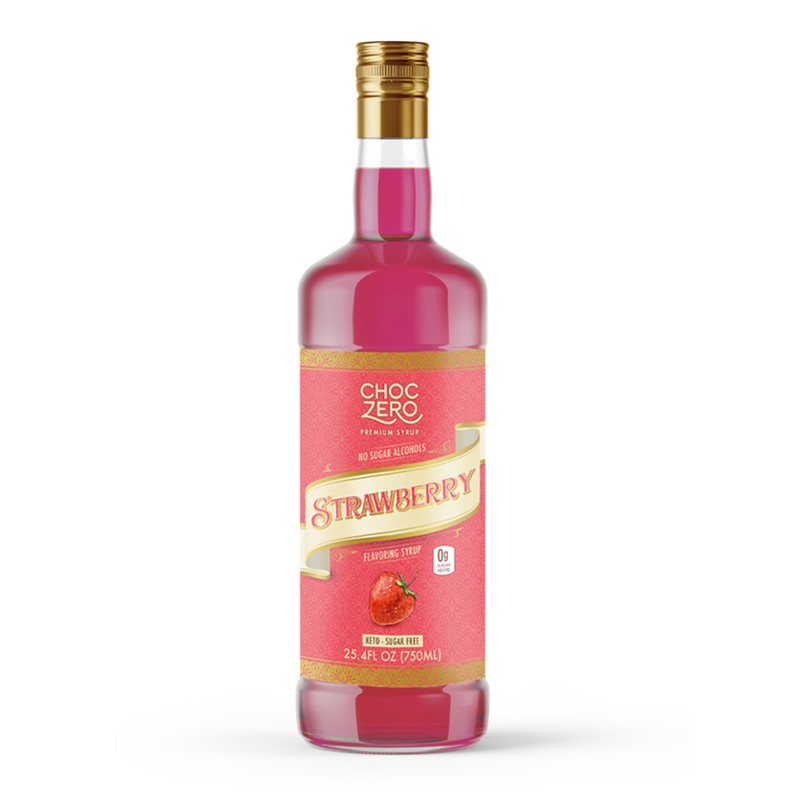 25.4 Fl oz bottle of sugar free strawberry flavoring syrup.